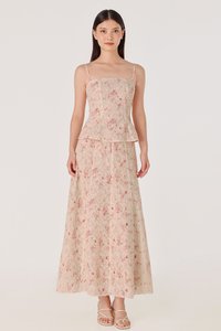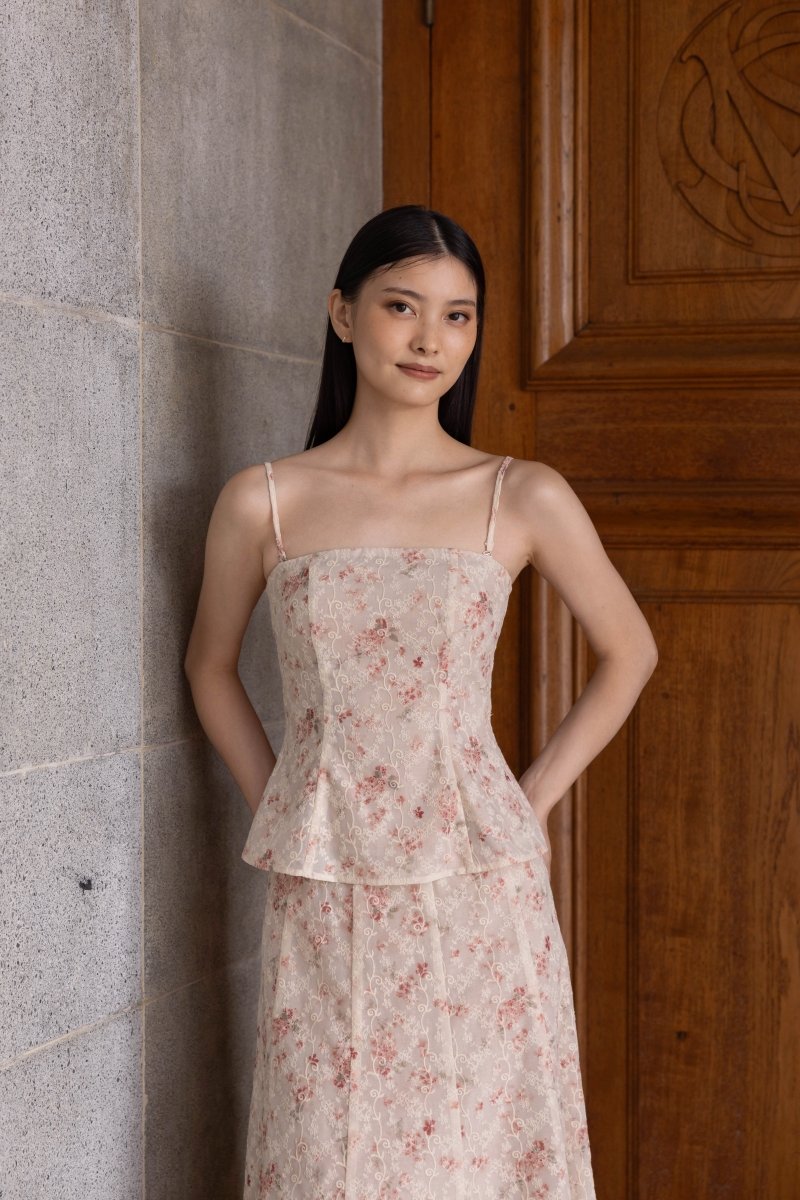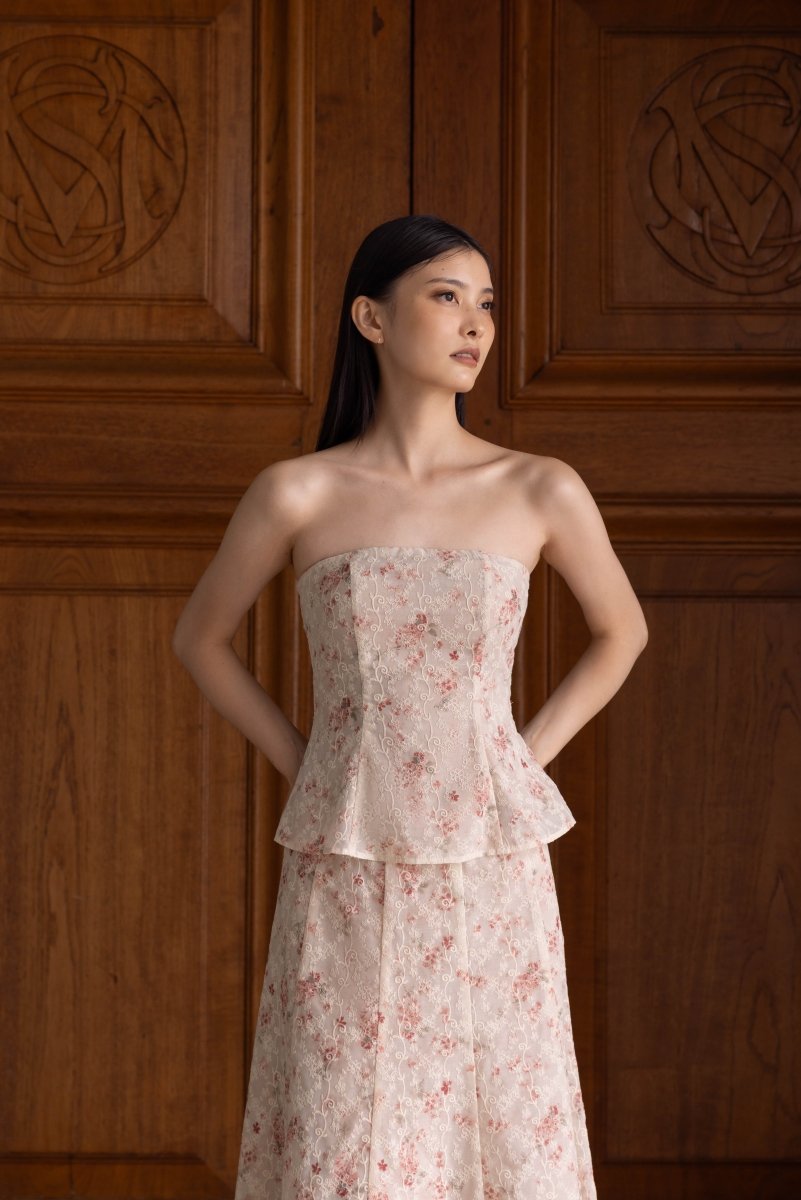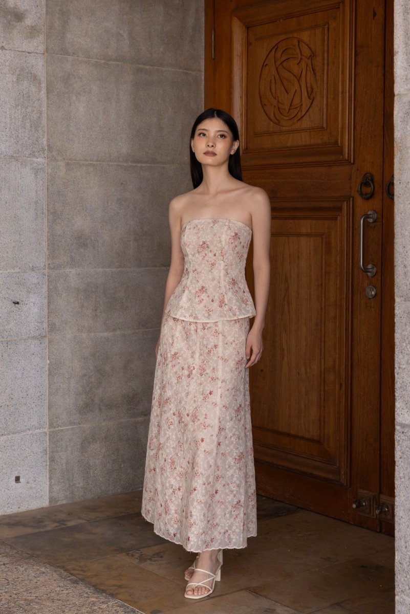 Enjoy 10% off per set if you purchase both Sakura Padded Floral Embroidered Two-Way Top (in any size) & Sakura Floral Embroidered Maxi Skirt (in any size) here.