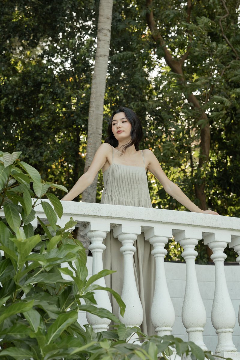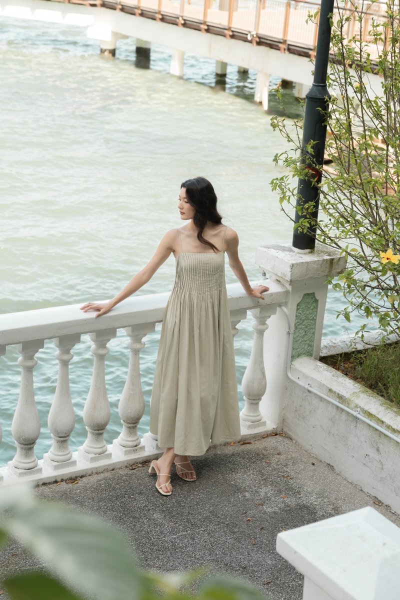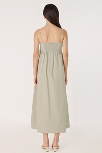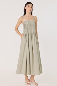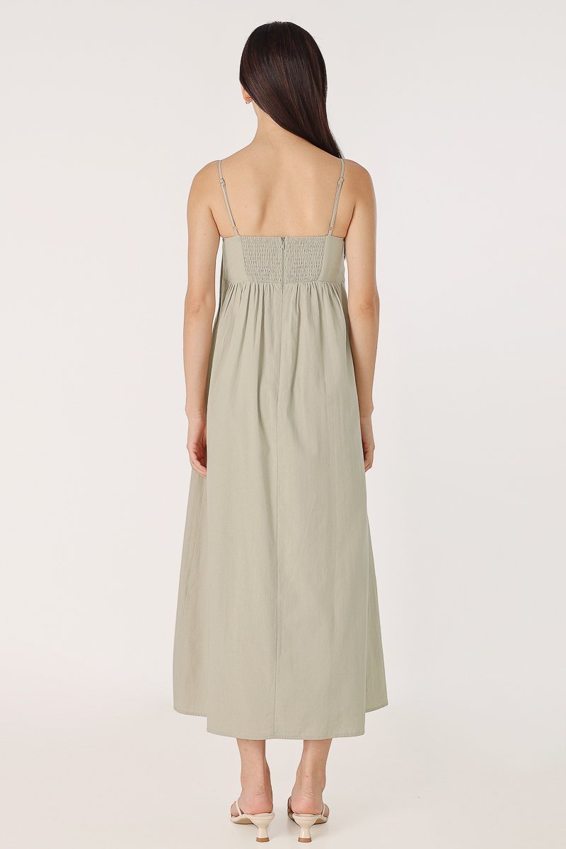 SHAMAINE PADDED LINEN PINTUCK MIDAXI DRESS (GREEN)