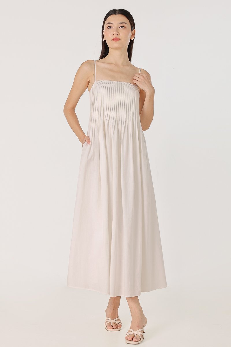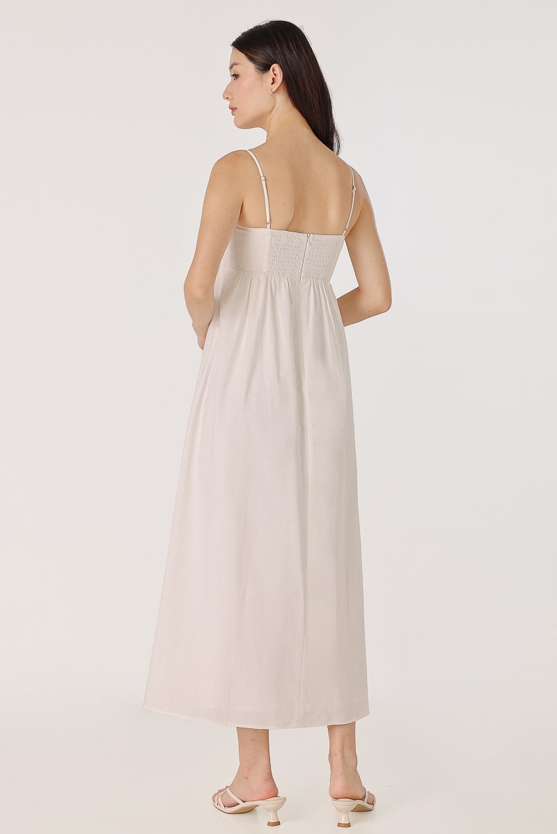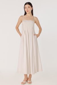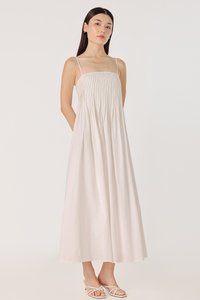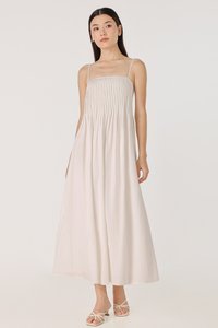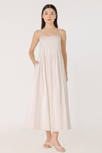 SHAMAINE PADDED LINEN PINTUCK MIDAXI DRESS (WHITE)