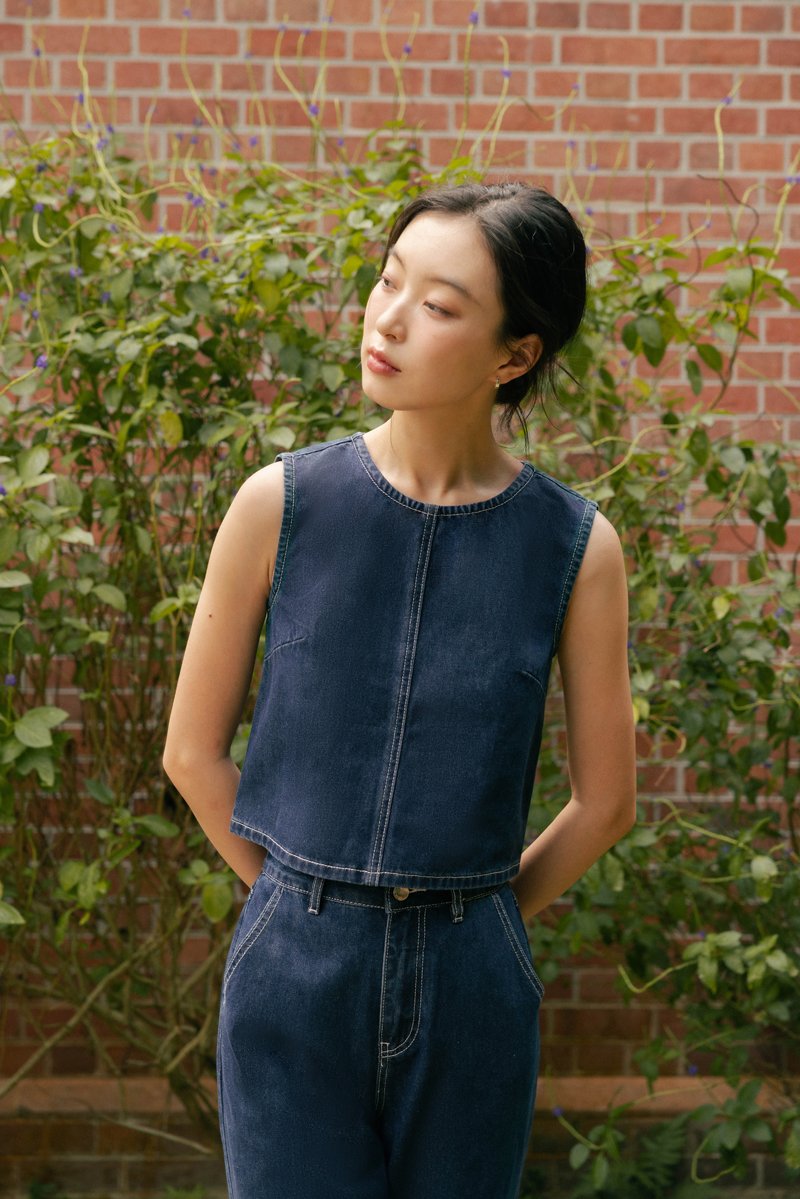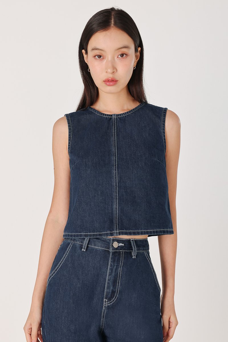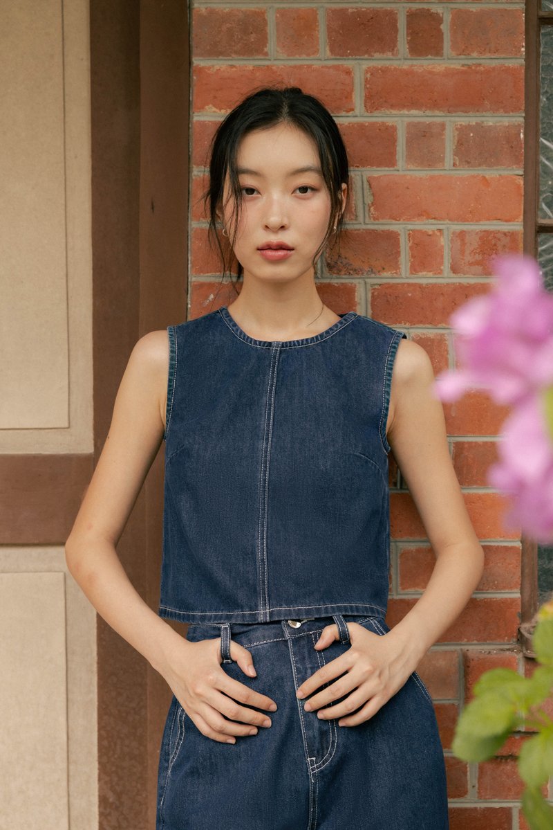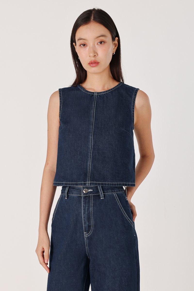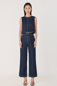 SPOT ON CONTRAST STITCH A-LINE DENIM TOP