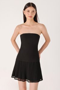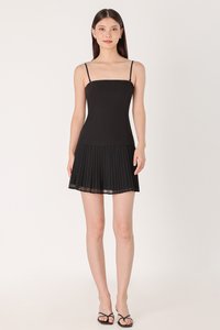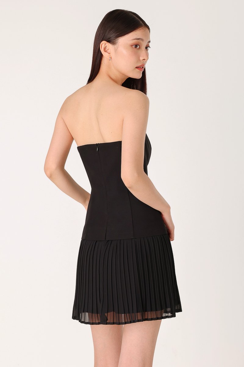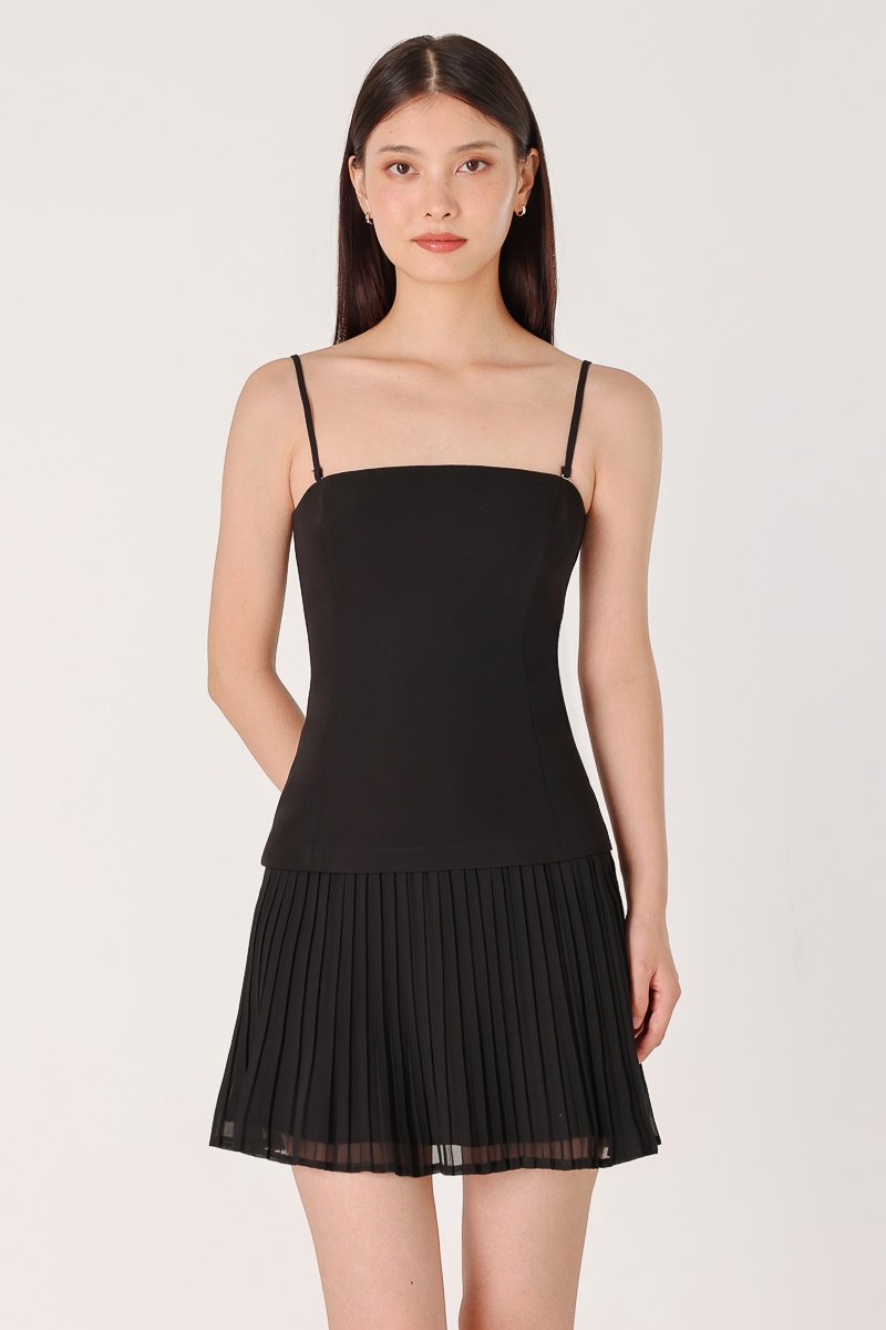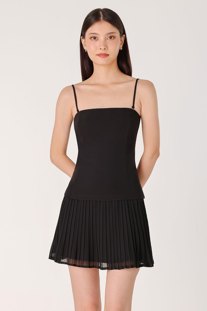 SUZETTE PADDED FABRIC CONTRAST TWO-WAY PLEATED SKORTS DRESS (BLACK)
