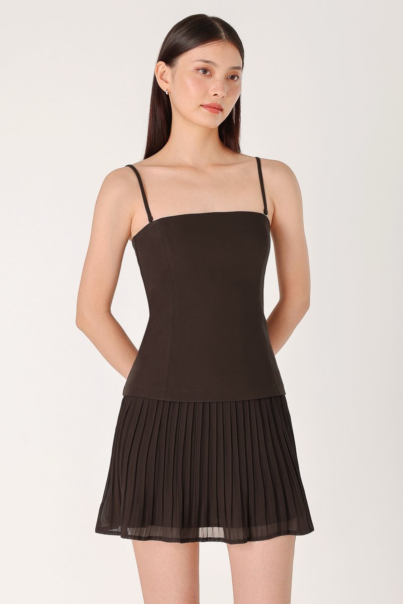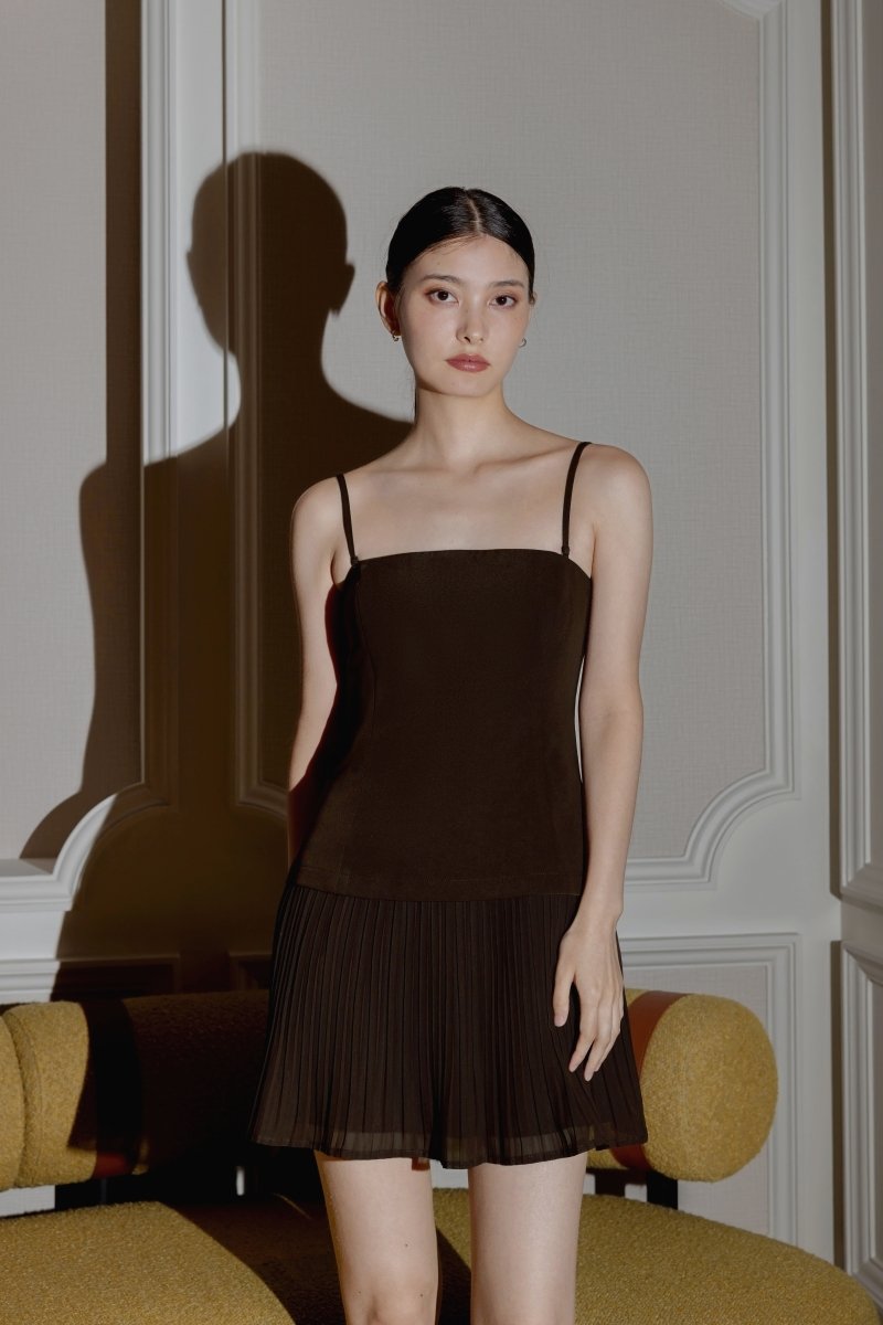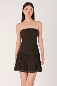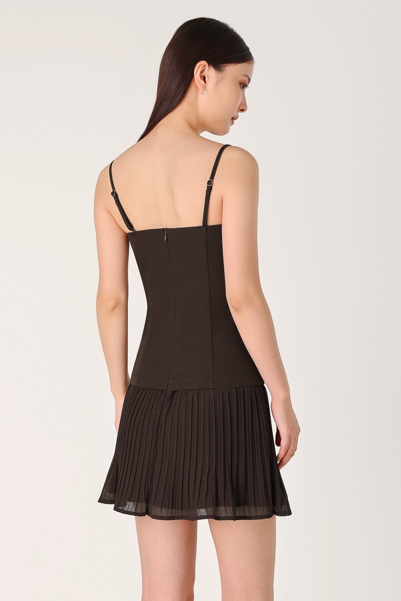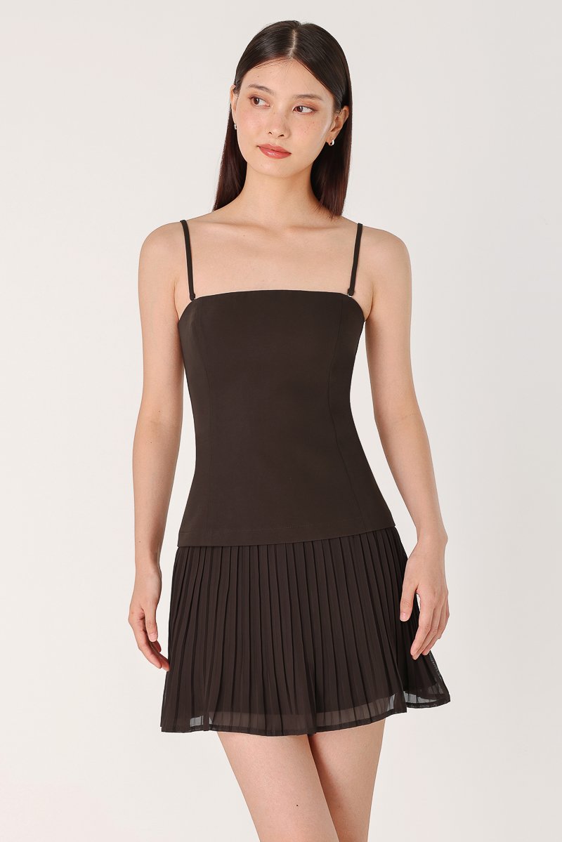 SUZETTE PADDED FABRIC CONTRAST TWO-WAY PLEATED SKORTS DRESS (ESPRESSO)