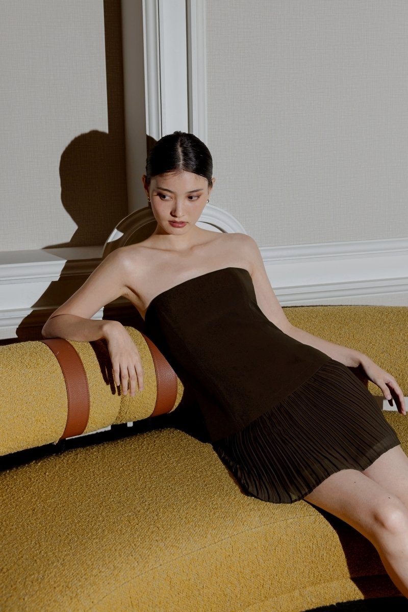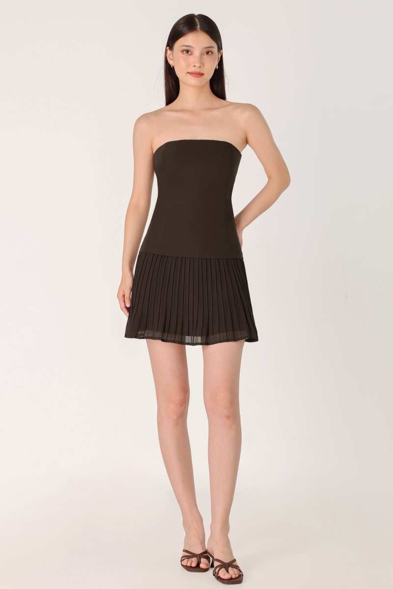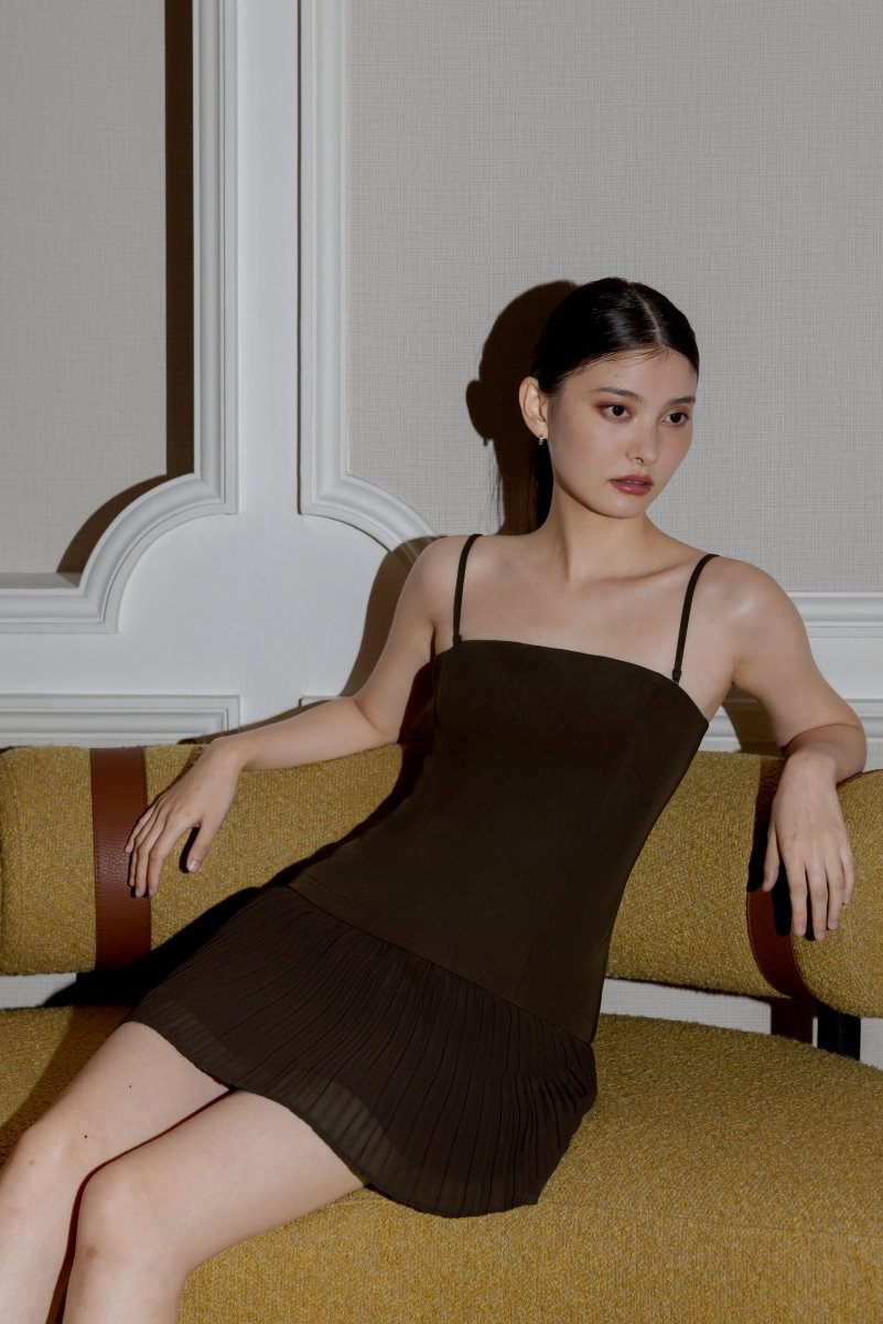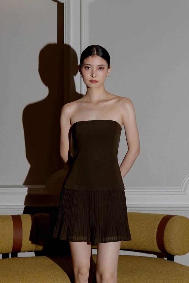 SUZETTE PADDED FABRIC CONTRAST TWO-WAY PLEATED SKORTS DRESS (ESPRESSO)