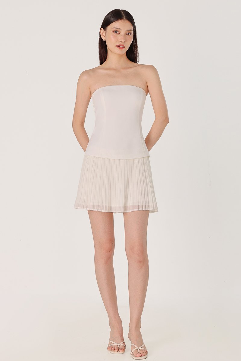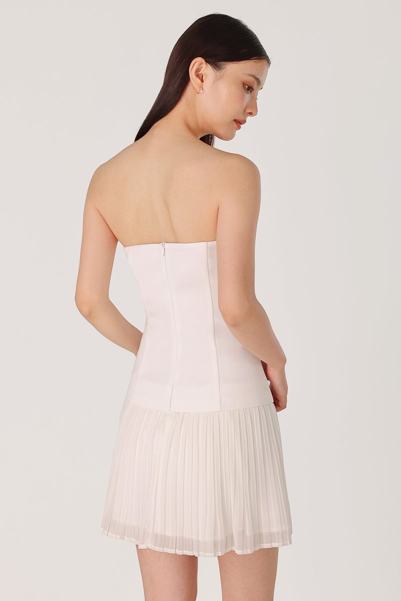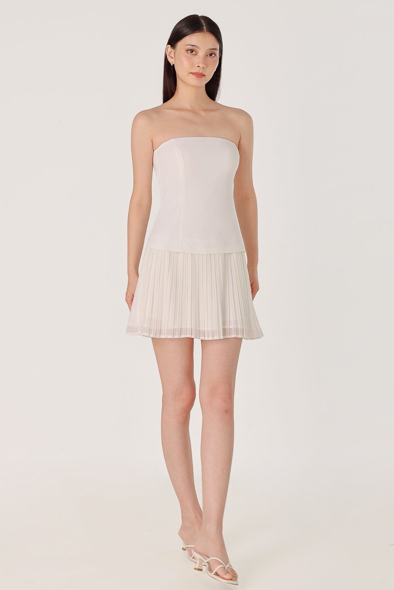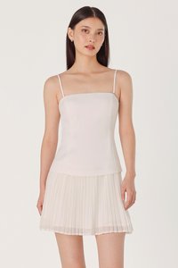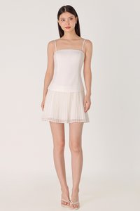 SUZETTE PADDED FABRIC CONTRAST TWO-WAY PLEATED SKORTS DRESS (WHITE)
