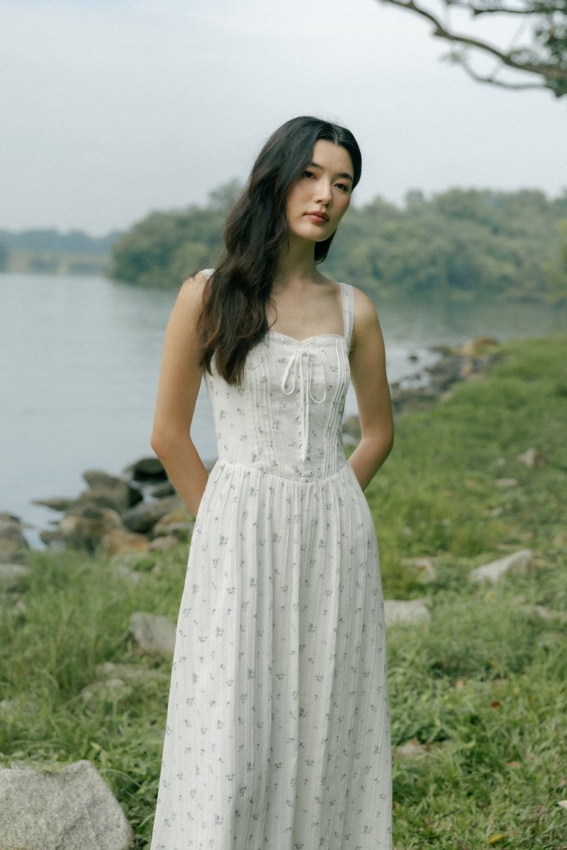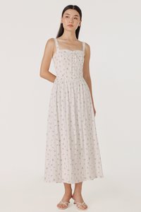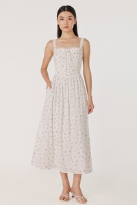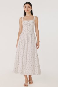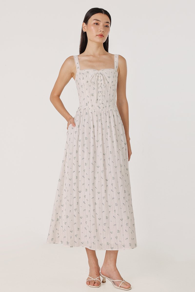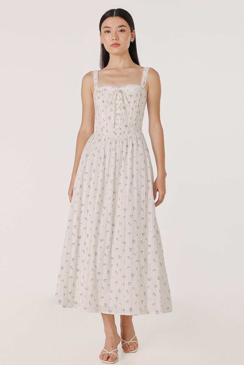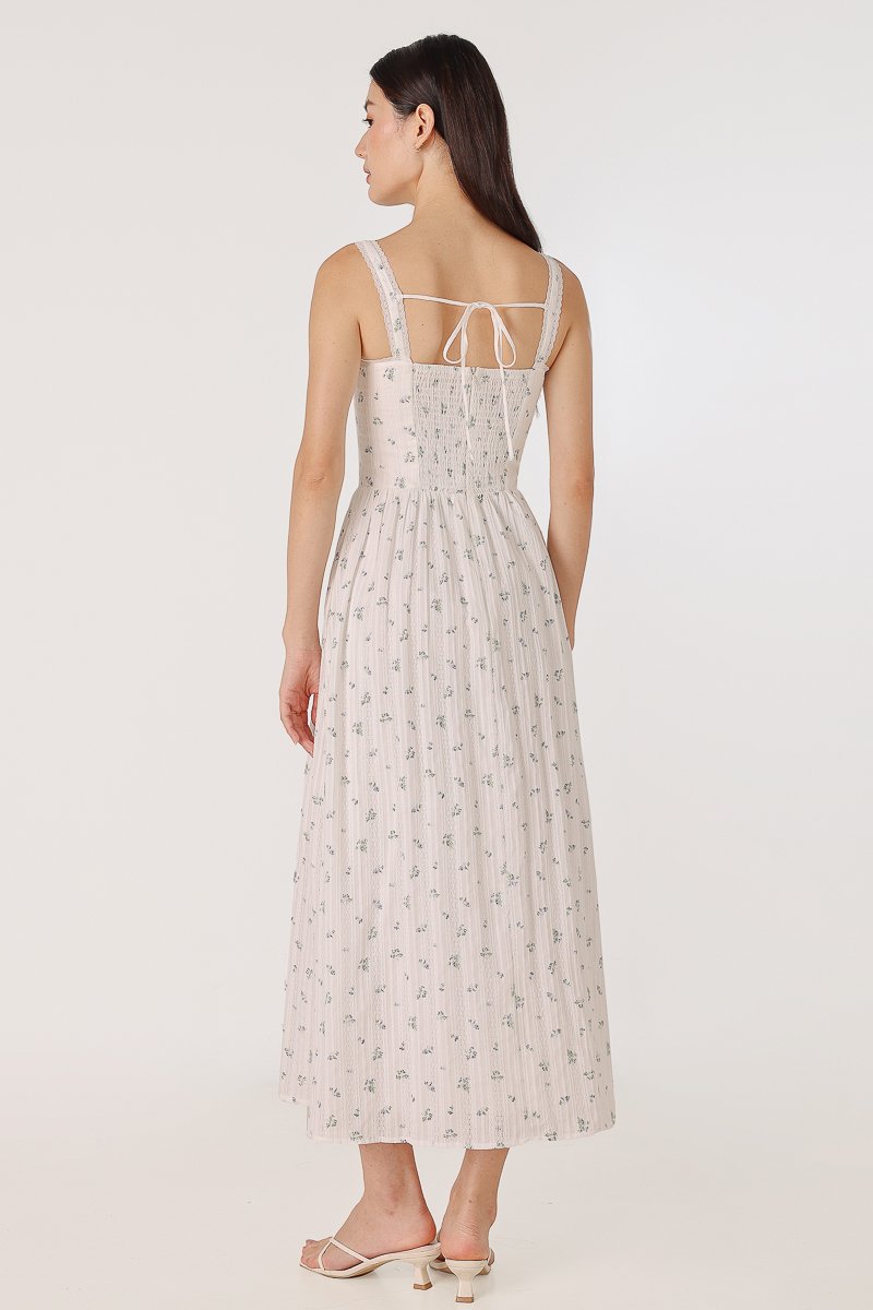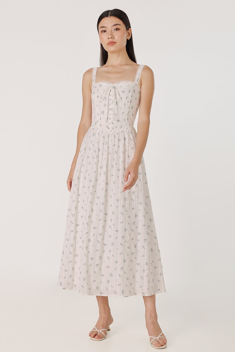 TASHA PADDED FLORAL PINTUCK CORSET MIDAXI DRESS