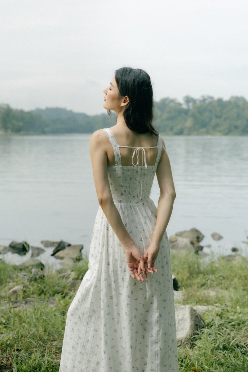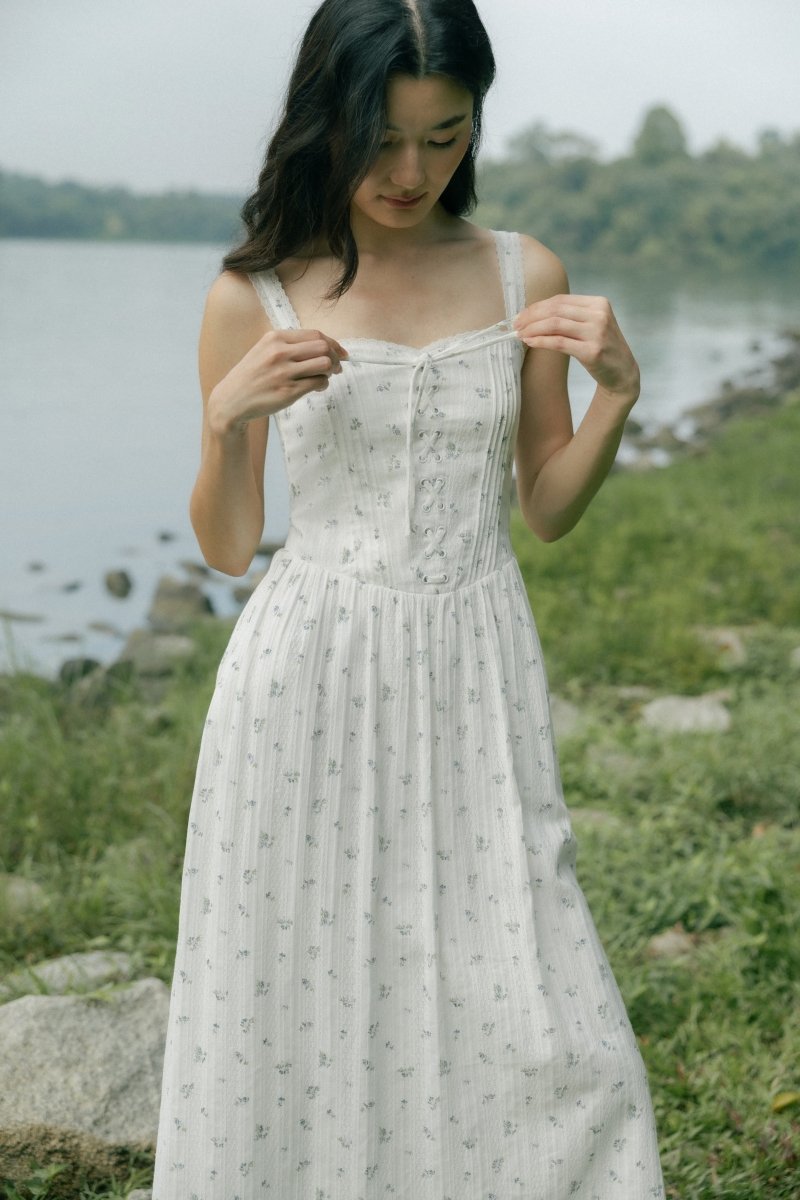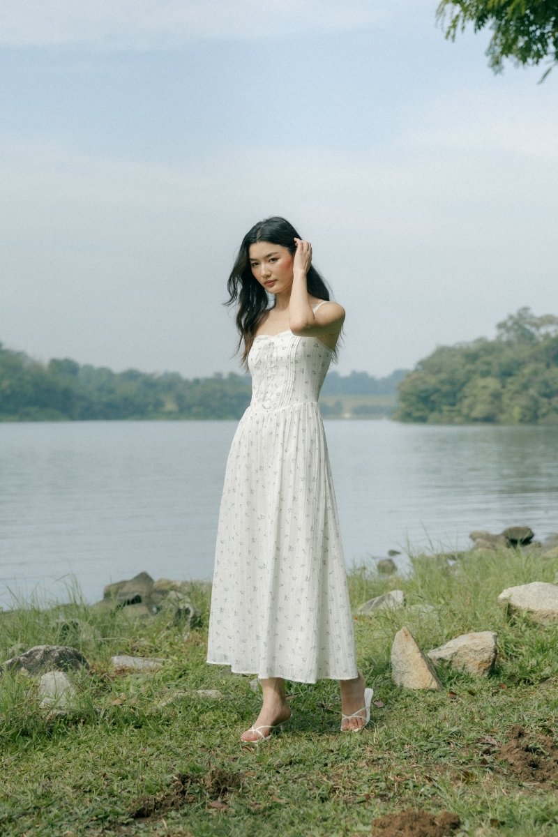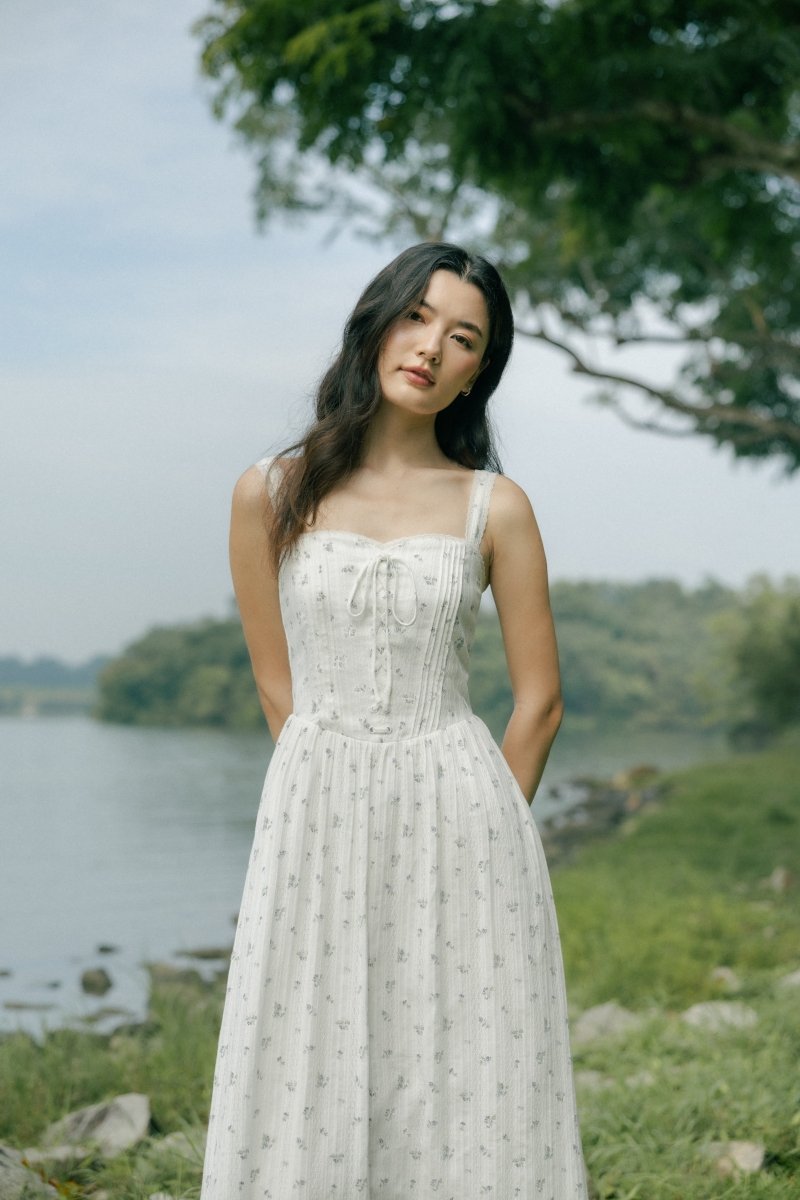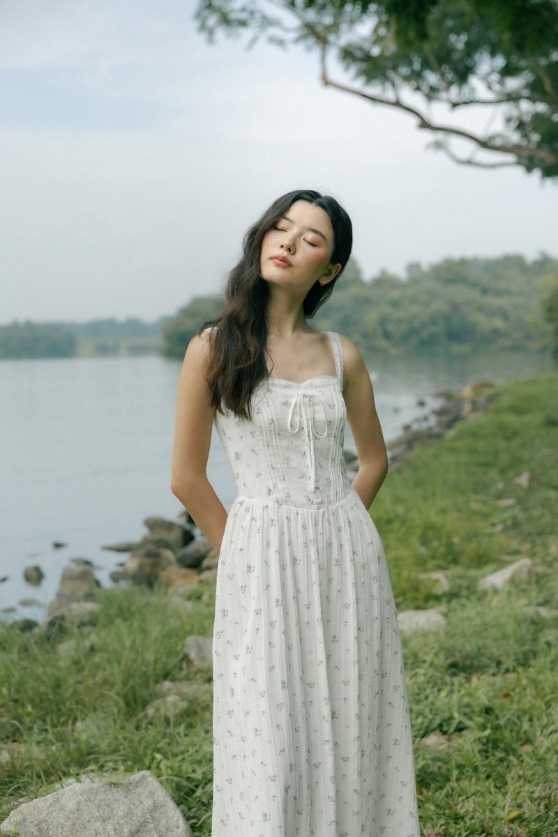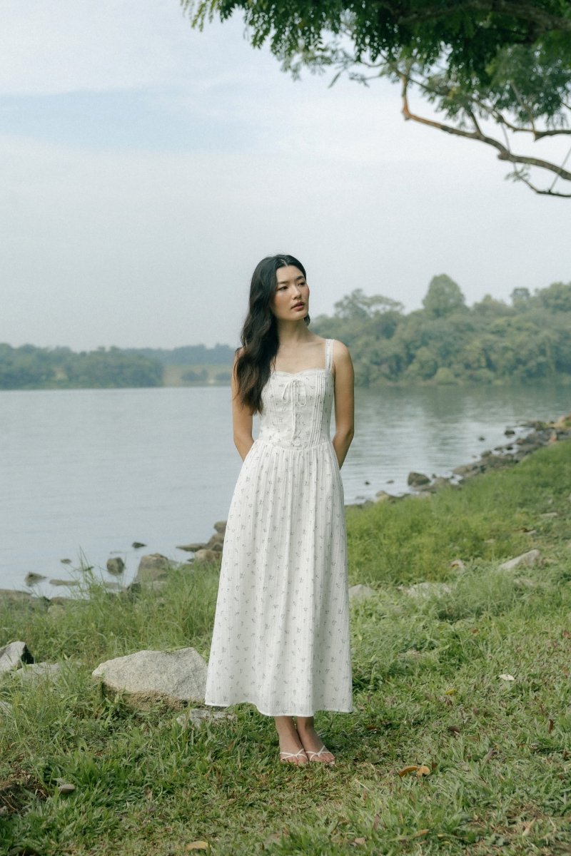 TASHA PADDED FLORAL PINTUCK CORSET MIDAXI DRESS