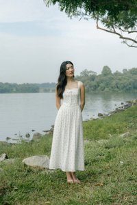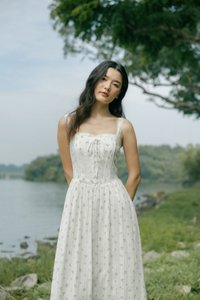 Model Du Yue UK6, 173.5cm (PTP 15.25", Waist 11.5") wears size S for tops/dresses/outerwears/one-pieces and size XS for bottoms.