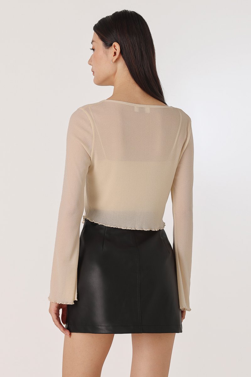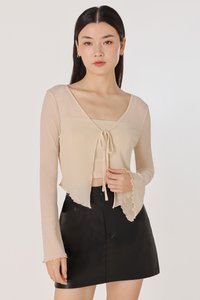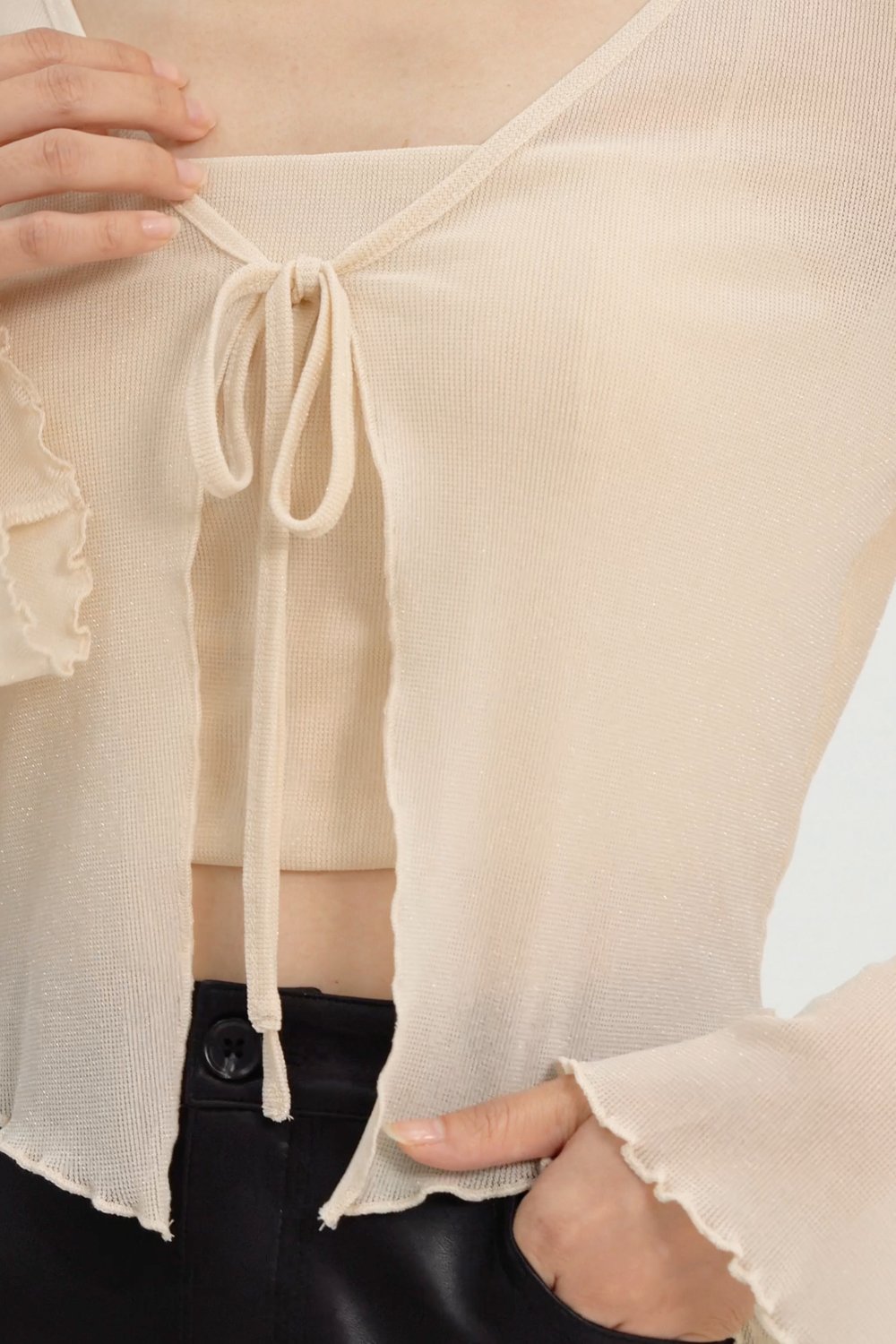 THEORA GLITTER MESH FLARE SLEEVES CARDIGAN SET (CHAMPAGNE) *BFF*