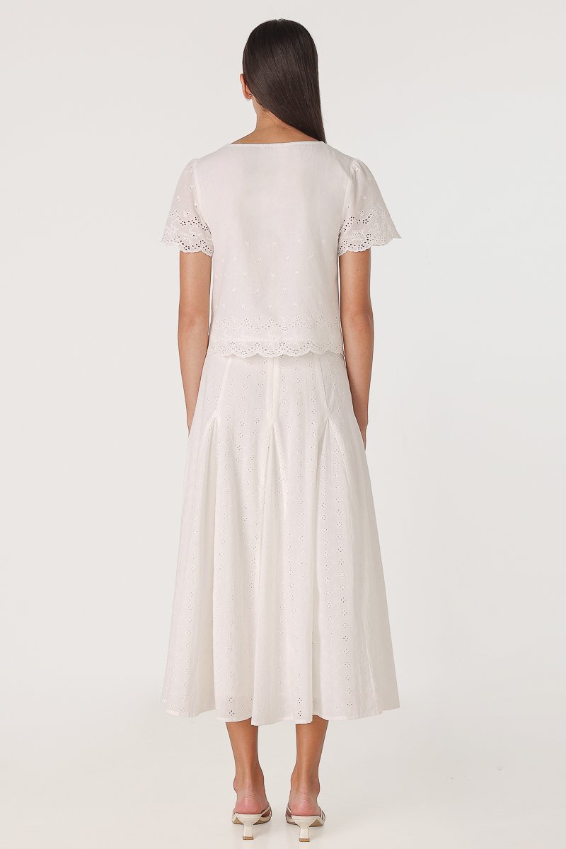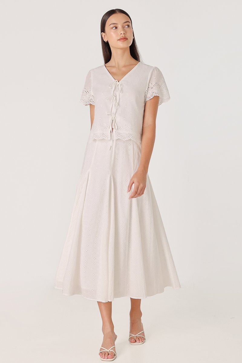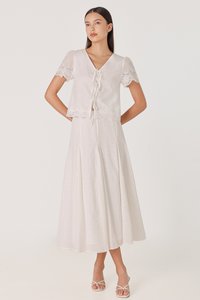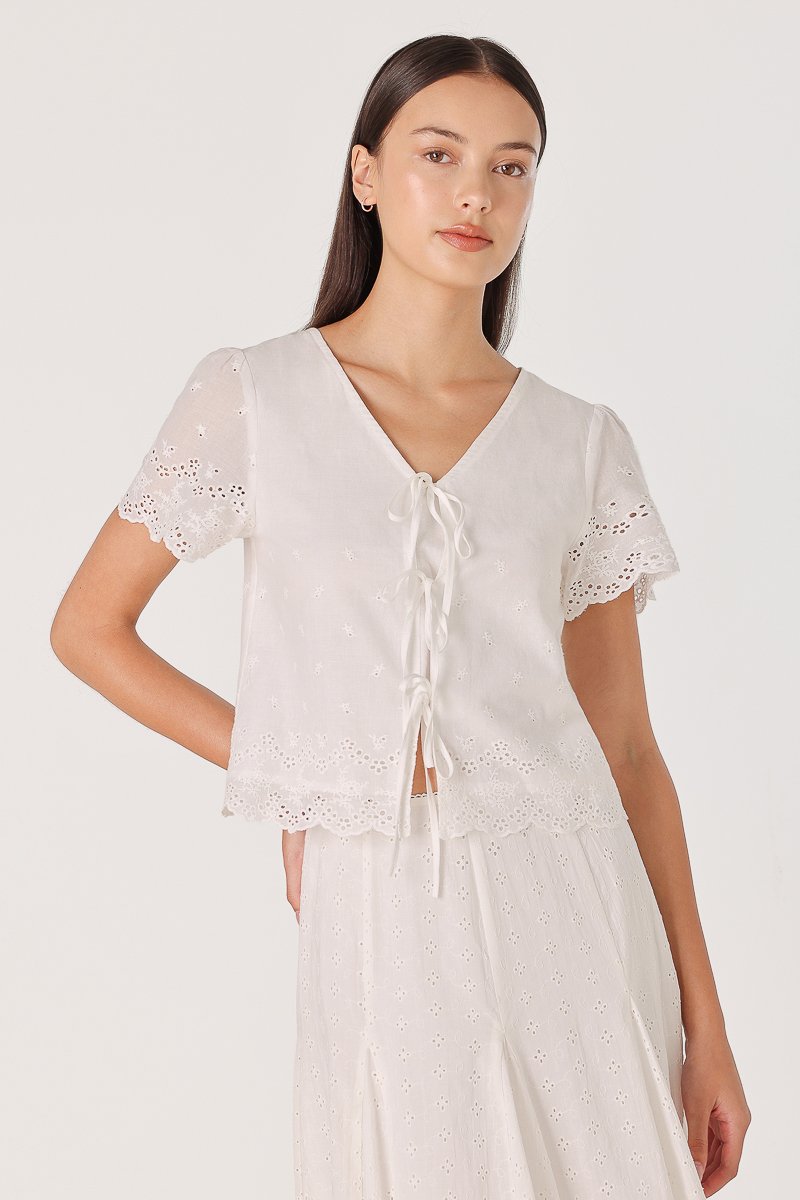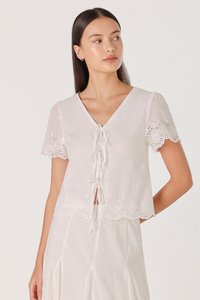 ZENYA BRODERIE RIBBON-TIE SCALLOP SLEEVE TOP